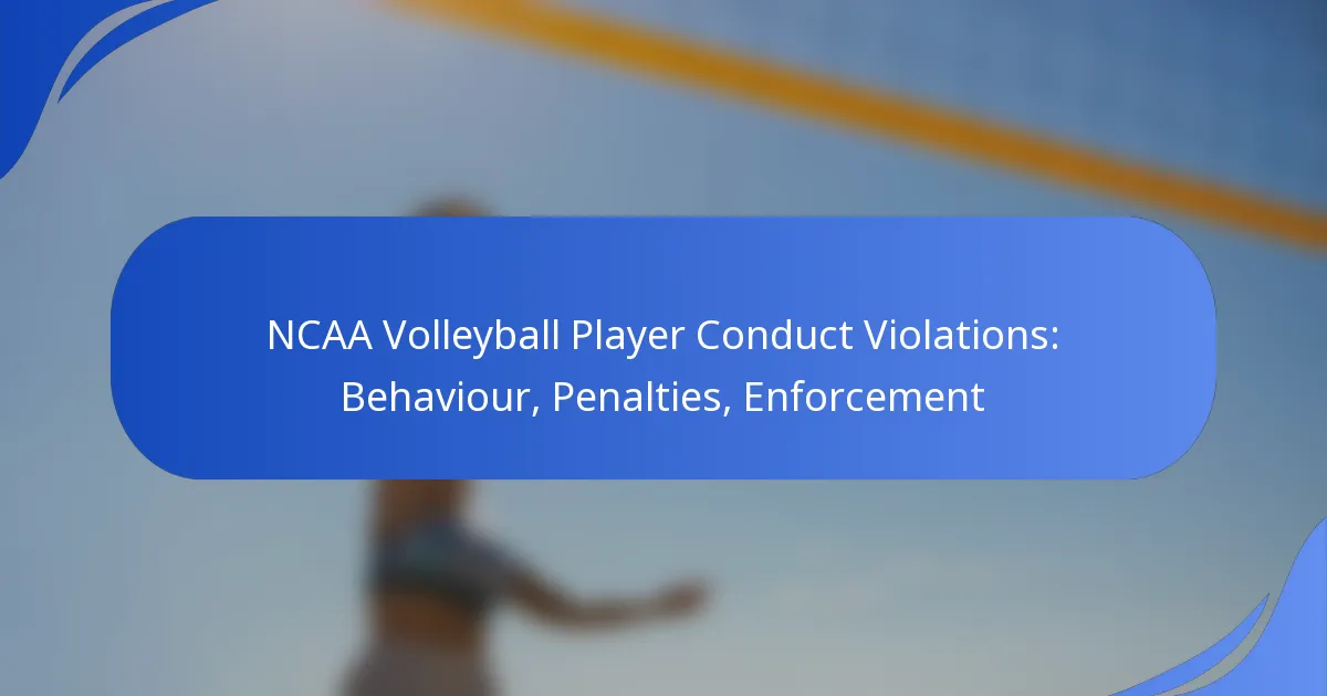 The NCAA conduct rules for volleyball players outline the expected behaviours and associated penalties for violations, promoting sportsmanship and integrity within the sport. Players may face various conduct violations, including unsportsmanlike behaviour and academic dishonesty, which can significantly impact their eligibility and team standing. Familiarity with these rules and potential penalties is essential for maintaining compliance and upholding the integrity of NCAA volleyball.